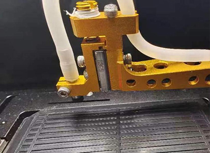 For reliable operation, the rail resistivity of the connector connected to the driver IC must be lower than that of the ITO connection used within the liquid crystal unit. To realize ACF binding technology, the driver IC has gold bumps on the connection pads. The connection between the driver IC and the glass substrate is also formed by ITO, and ACF consists of epoxy resin (similar to UV-curable glue) containing conductive particles. The conductive particles ensure contact between the gold bumps that drive the IC and the ITO conductors on the glass. The fixation of ACF glue establishes the necessary pressure between the chip and the liquid crystal glass to ensure a good electrical connection between the bump and the track on the liquid crystal glass. Due to the surface tension of the glue on the conductor beads, there is no horizontal contact between the conductive particles, thus avoiding a short circuit between the adjacent gold bumps that drive the IC.